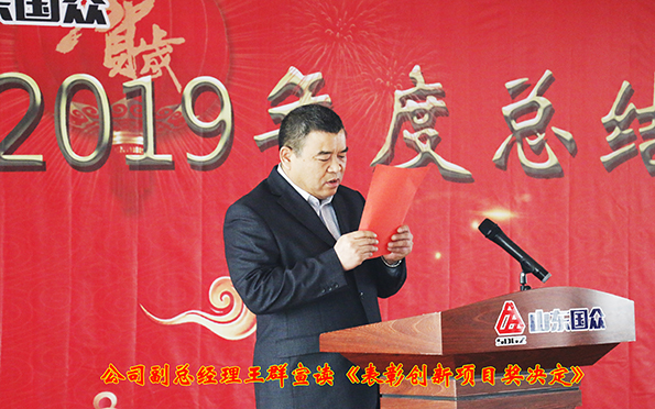 會(huì)上,公司常務(wù)副總經(jīng)理崔新平宣讀了公司2019年度表彰決定;公司副總經(jīng)理王群宣讀了關(guān)于表彰優(yōu)秀創(chuàng)新項(xiàng)目的決定。