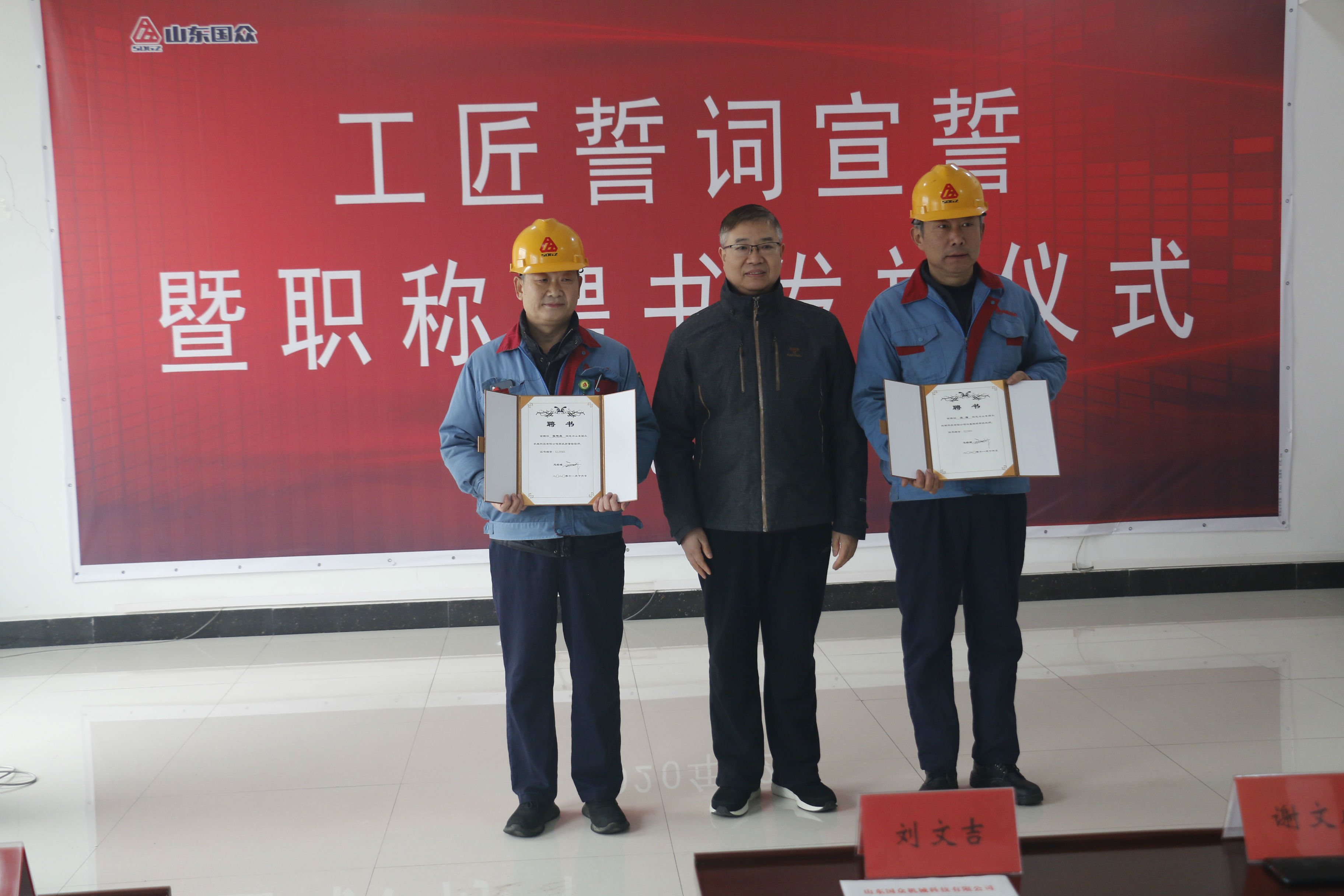 2020年12月12日上午11時(shí),山東國(guó)眾機(jī)械科技有限公司在一樓培訓(xùn)室,舉行了莊嚴(yán)的工匠宣誓暨職稱(chēng)聘任儀式。謝文成總經(jīng)理等公司領(lǐng)導(dǎo)和受聘工匠代表參加了本次活動(dòng),公司常務(wù)副總經(jīng)理劉文吉主持了此次活動(dòng)。