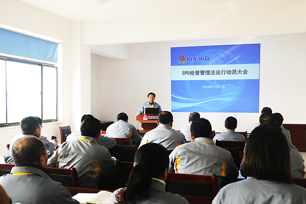 2016年12月1日上午,公司在一樓會議室組織召開了SPD經(jīng)營管理試運行動員大會。公司總經(jīng)理謝文成、常務副總劉文吉、崔新平、財務總監(jiān)張美萍、黨總支副書記徐博、副總經(jīng)理陸毅、鄭清河等公司領導及公司中層以上管理干部參加了會議,公司常務副總經(jīng)理劉文吉主持了會議。